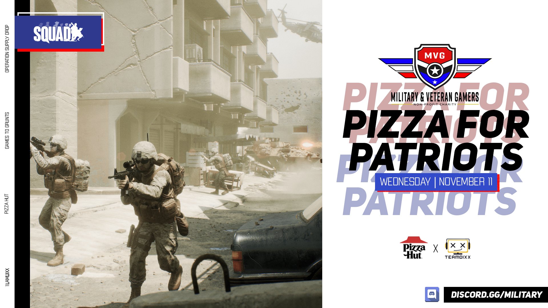 Military Veteran Gamers Charity 501 C 3 On Twitter Pizza For Patriots Sponsored By Pizzahut Veteran Active Duty First Responder Or Civilian Patriot Join Us On Discord At Https T Co Bghzqbpfwj Veterans Day Nov 11th